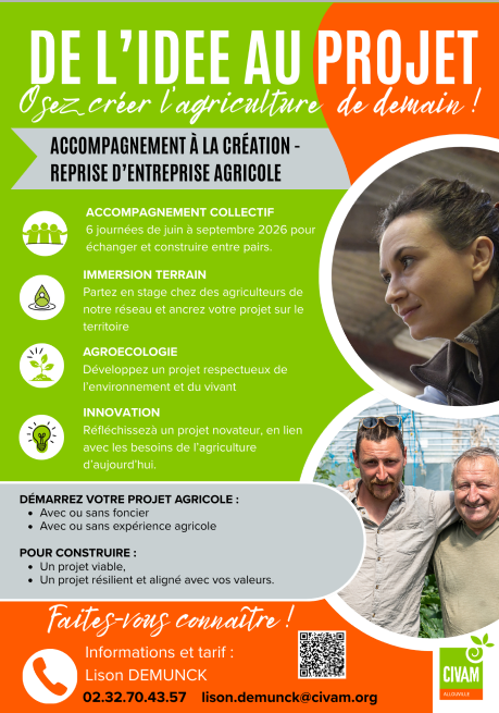 chargée de projet Installation-Transmission au CIVAM Allouville | | 02.32.70.43.57 | www.civam-normands.org